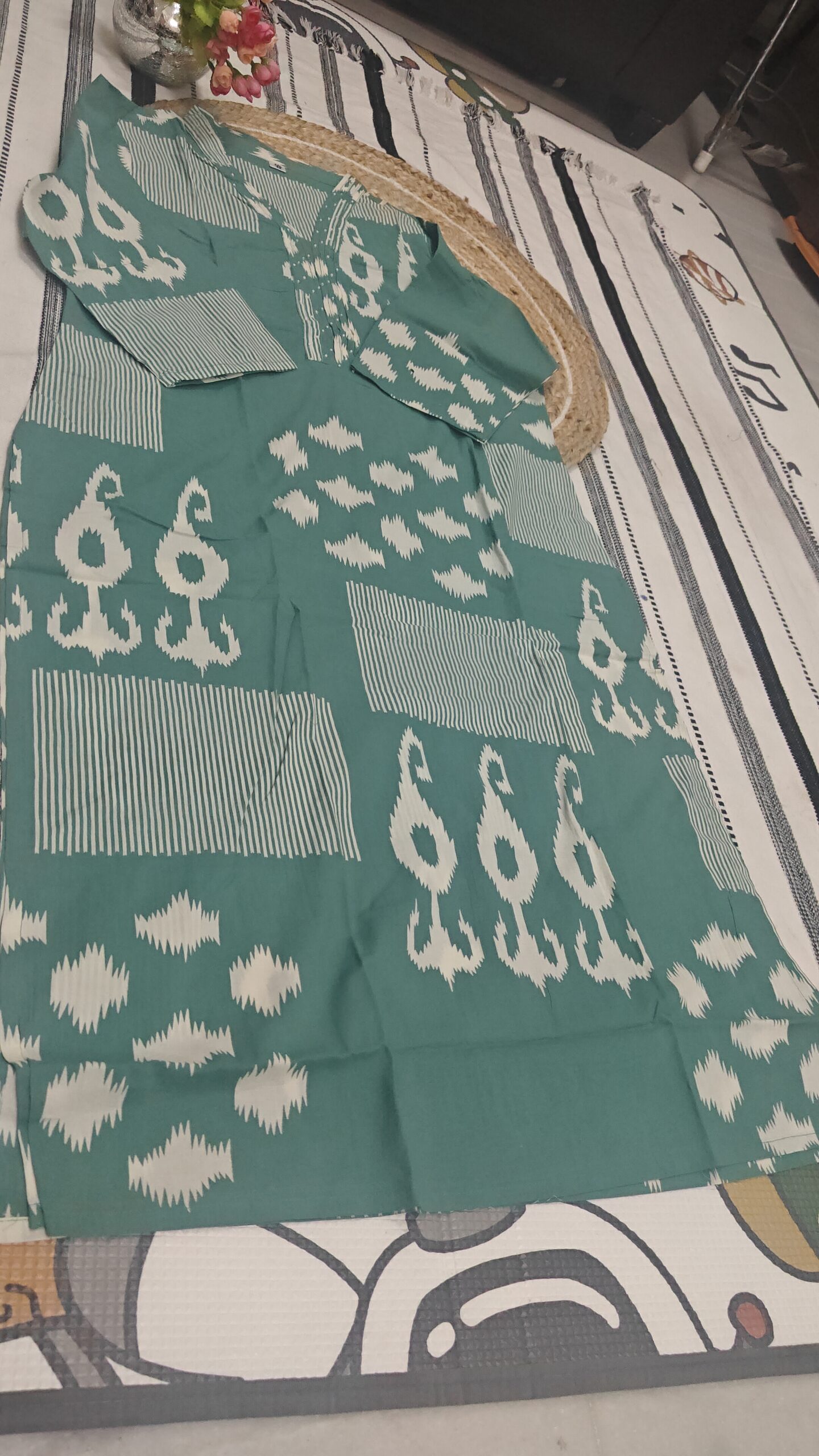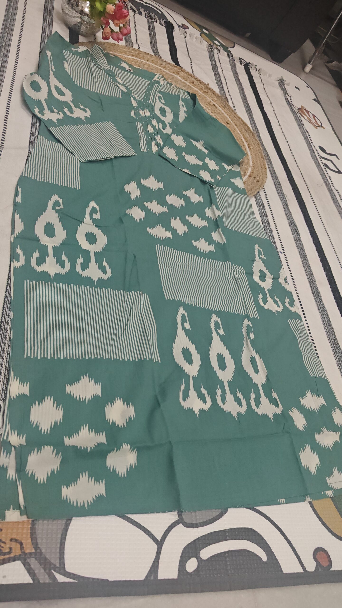 Design: Ikat-inspired motifs with stripe pattern
