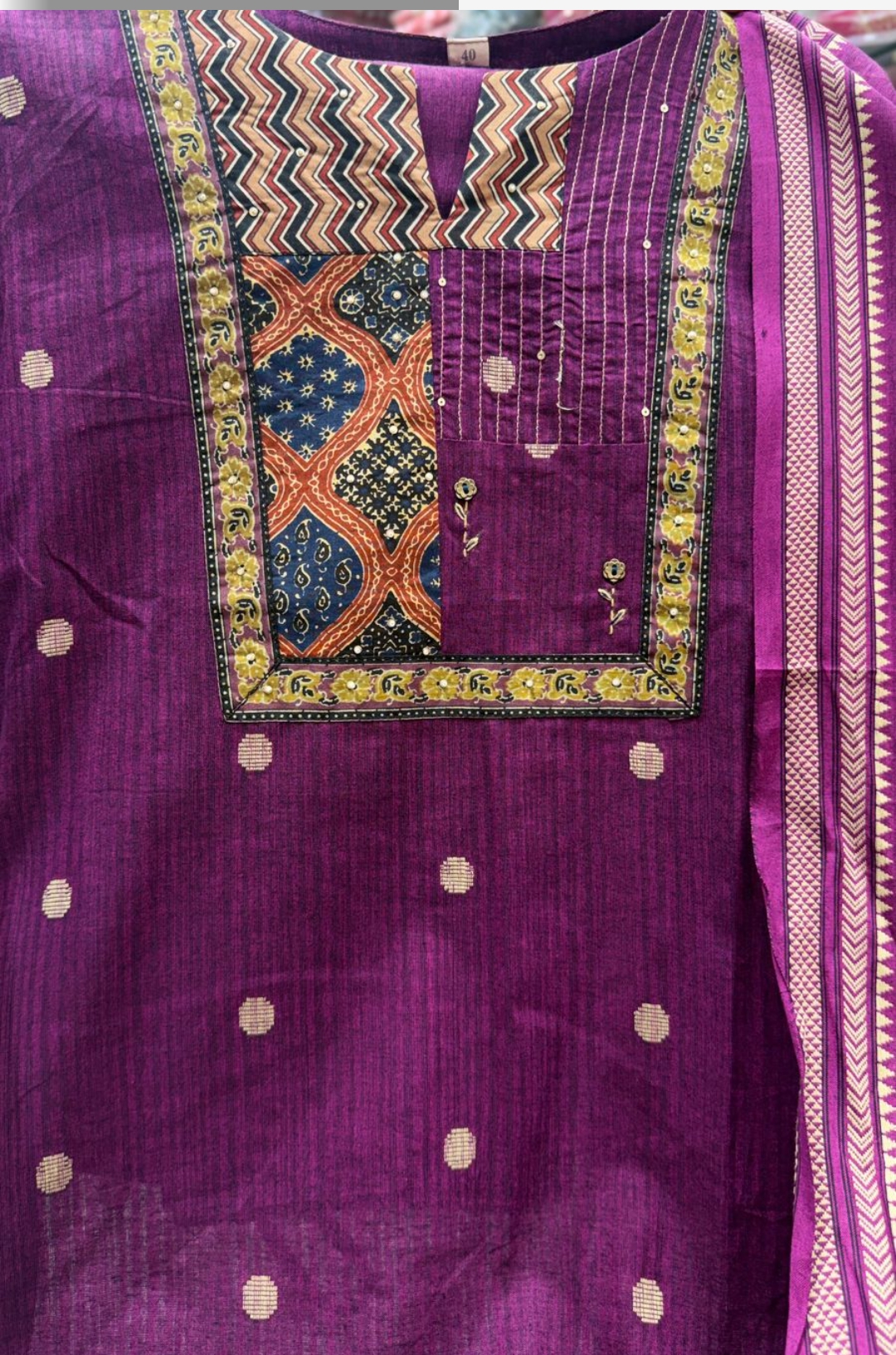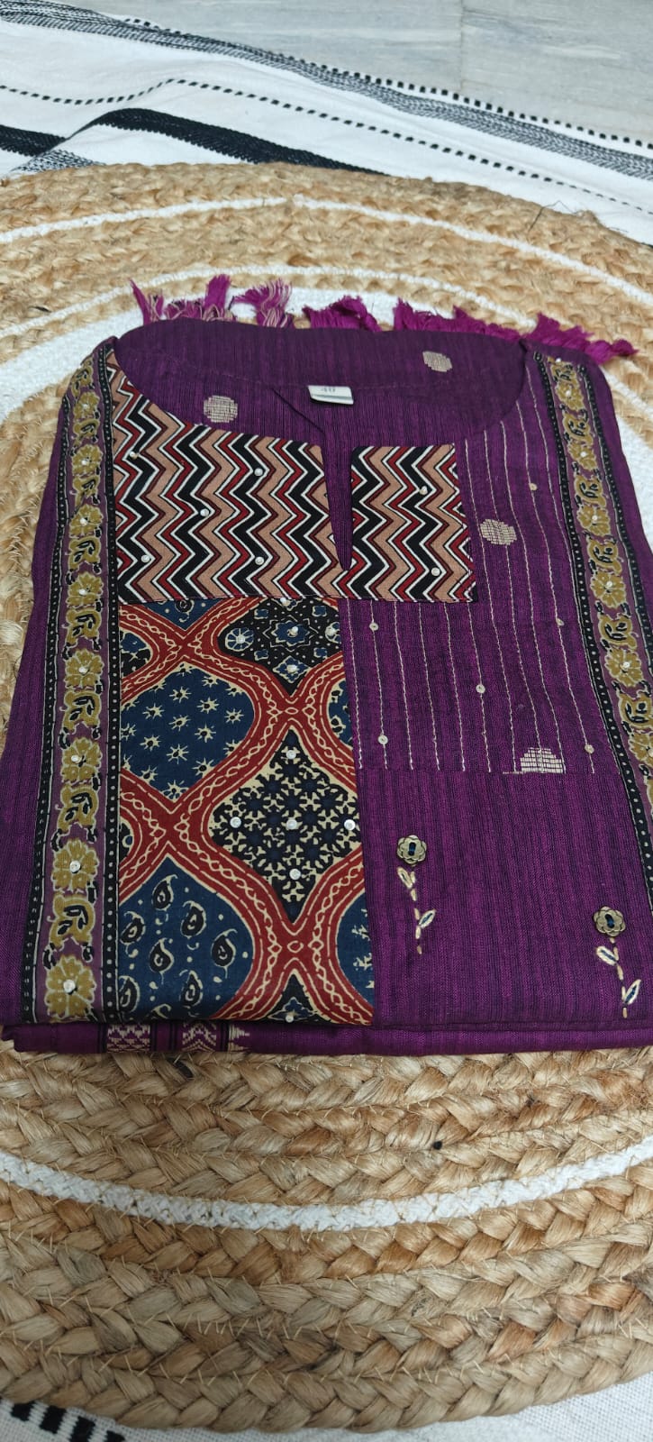 The rich plum shade combined with subtle traditional patterns adds a graceful ethnic charm, making it ideal for daily wear, office looks, and casual outings.