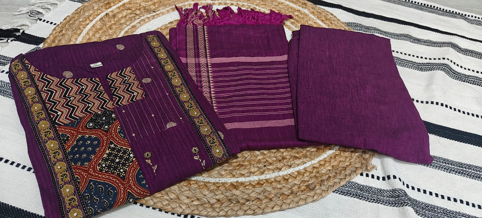 1. Elevate your everyday style with this elegant Royal Plum Handloom Cotton Dress Set, crafted for comfort and timeless appeal. Made from premium handloom cotton, this outfit is soft, breathable, and perfect for all-day wear.